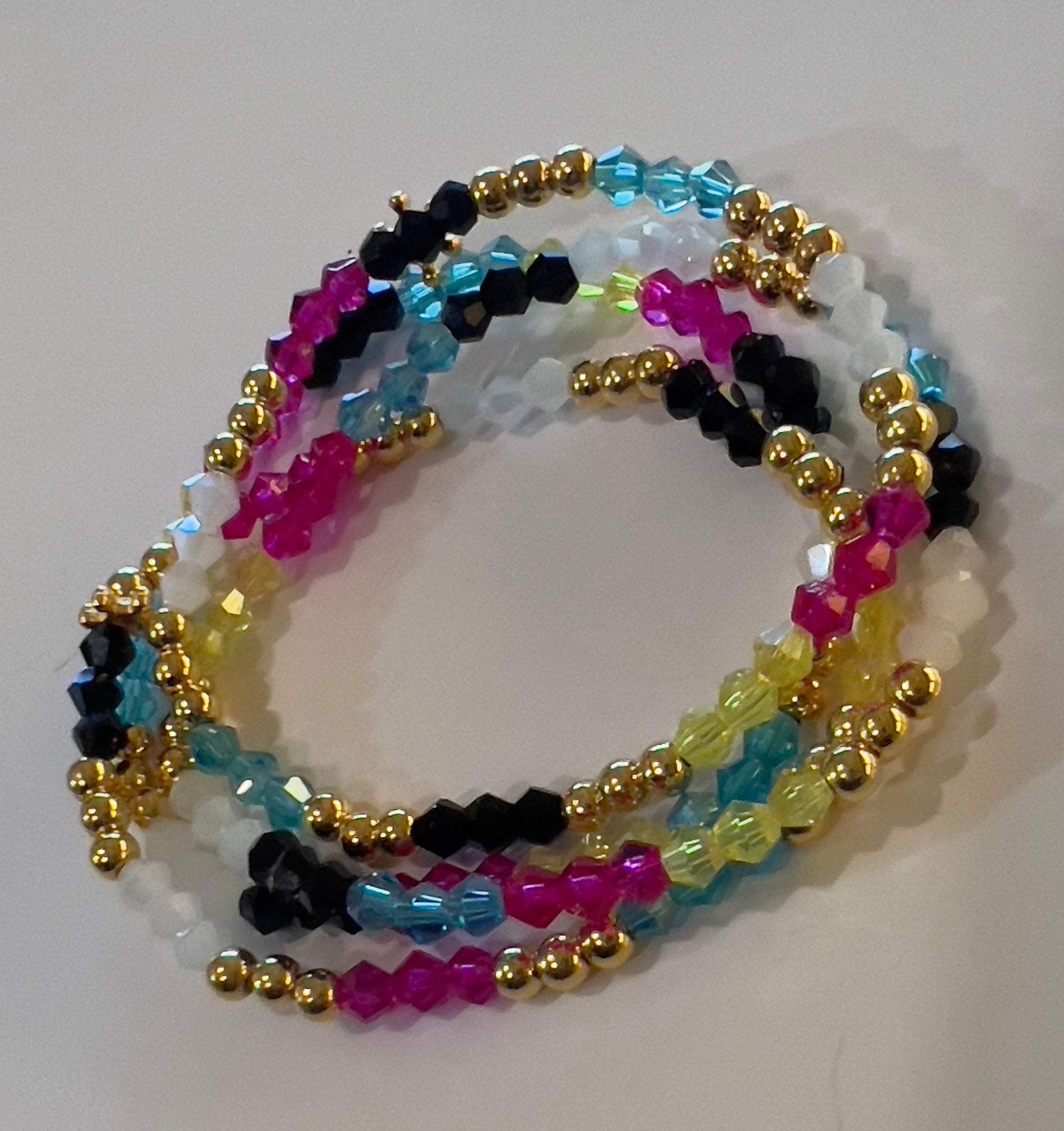 Handmade bracelet made with crystal & golden beads. These beautiful bracelets will add peps to your everyday outfits as they can be worn for all occasions.